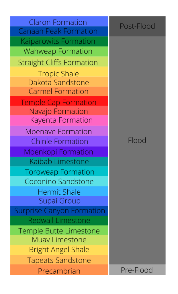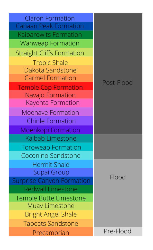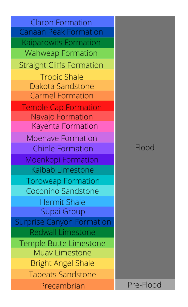 So, how does each of the Flood boundaries listed above appear in the geologic record at the Grand Staircase? Below, we will discuss different Flood boundary models in relation to this area. Please note that the models listed below are generalizations and do not reflect all variations of opinions.