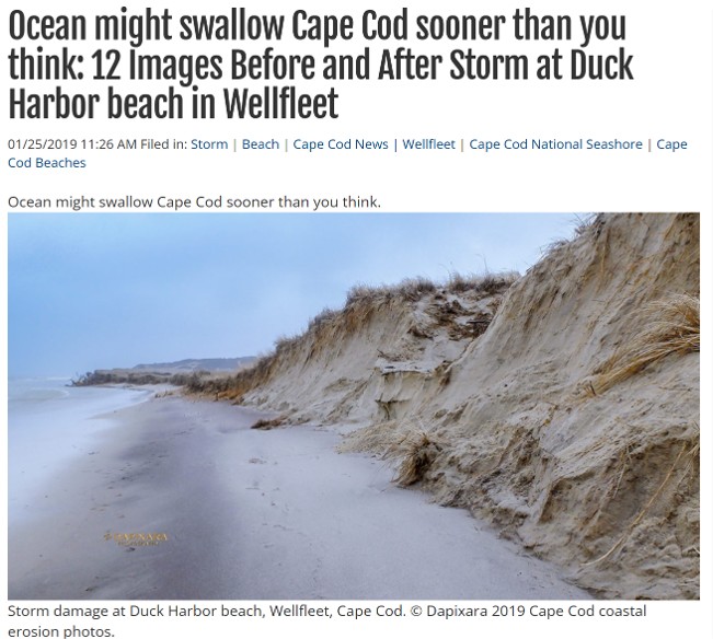 Headline from Cape Cod News warns about coastal erosion.