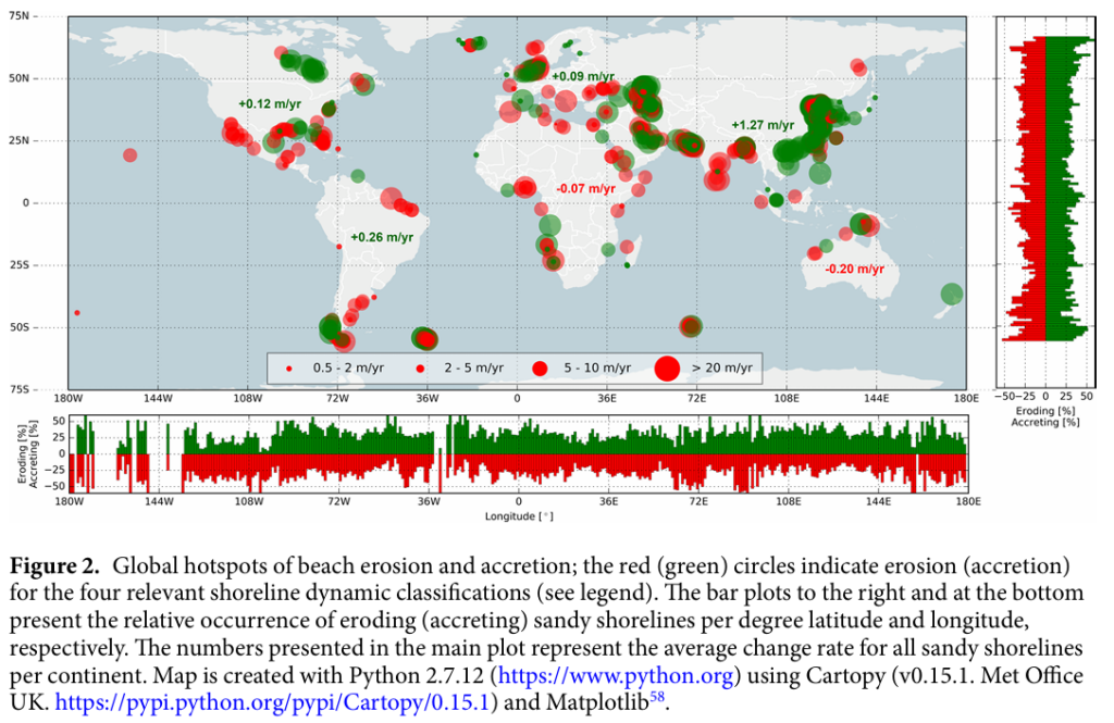 Luijendijk, A., Hagenaars, G., Ranasinghe, R., Baart, F., Donchyts, G., & Aarninkhof, S. (2018). The state of the world’s beaches. Scientific reports, 8(1), 6641.