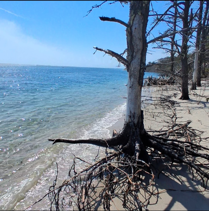I was standing in a forest, with a beach infringing on it. Instead of soil and tall, healthy trees, the long tree roots were uprooted and exposed. Seawater had removed the sand from the beach, leaving mangled trunks and exposed roots. Investigating further, I found dead tree bottoms with long root systems farther down the beach, where the ocean had dropped them off after sweeping them out to sea. My visit was in the middle of this destructive process, so I could see trees in every possible state: healthy trees in good soil further inland, dead trees with exposed roots on the very edge of land, and rotting trunks swept away from the beach, having succumbed to the unstoppable sea.