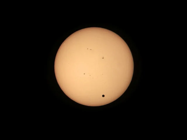 Another kind of eclipse is a transit, when a smaller object passes in front of a larger object. A good example is the transit of Venus across the surface of the Sun in 2012.
