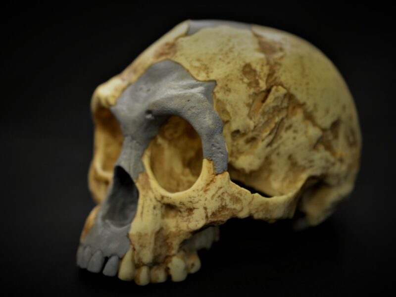 This skeleton was officially described in 2004.3 It belonged to a small female, standing just a little over three feet tall! Her brain was just one-third of the size of an average modern human brain. The remains were assigned to a new species, Homo floresiensis. Researchers sometimes affectionately refer to the little lady as “Flo.” And Flo was not alone. Lian Bua Cave yielded the remains of at least fifteen more small-bodied individuals.